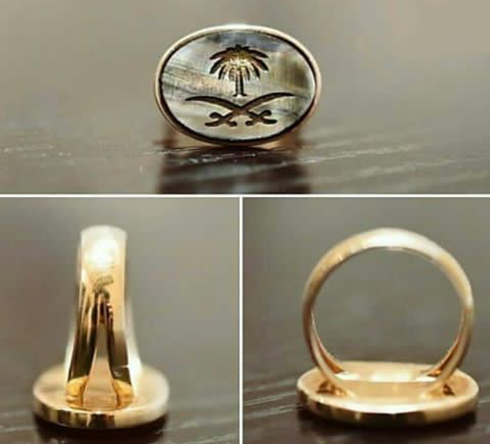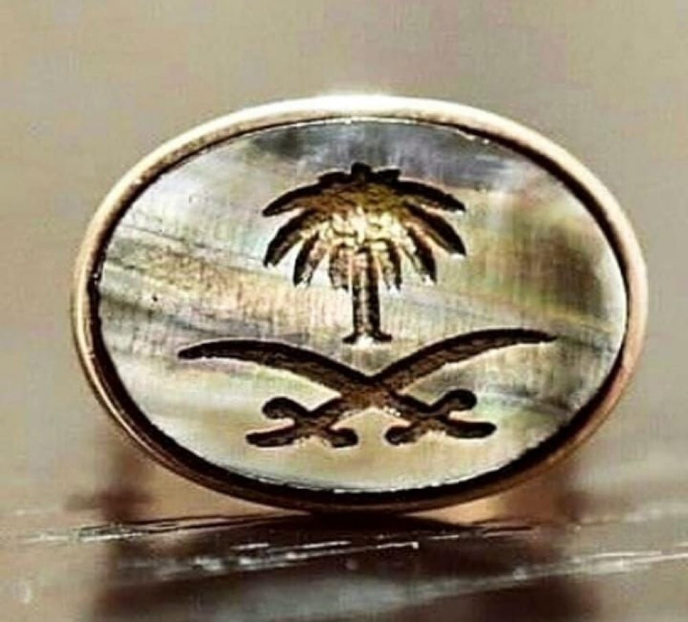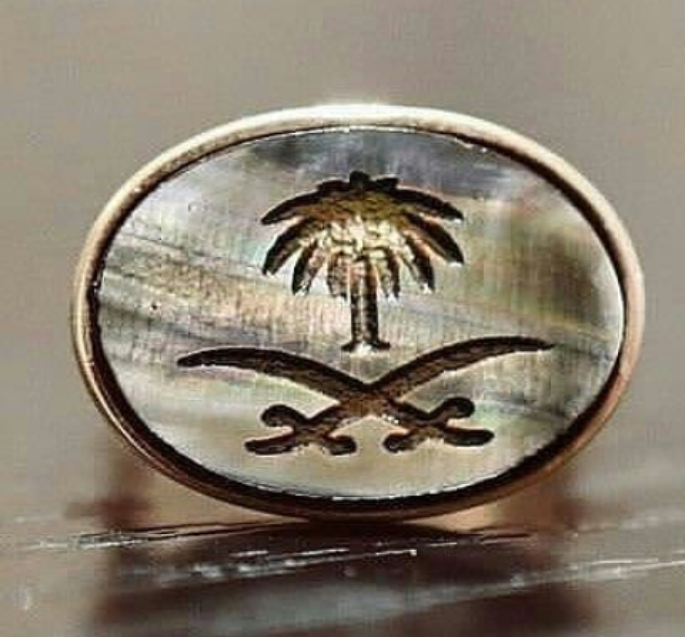 خاتم سيفين ونخلة مع حجر صدفي