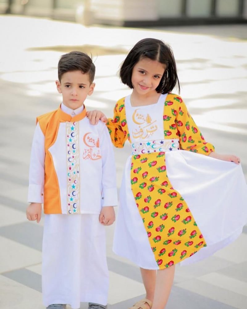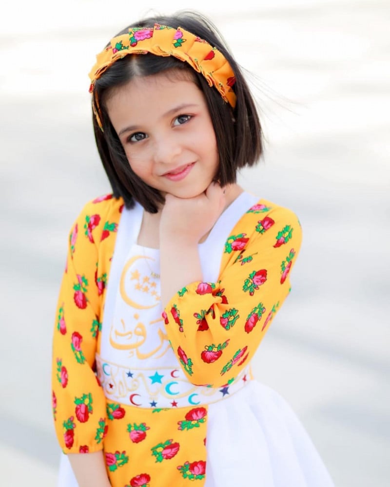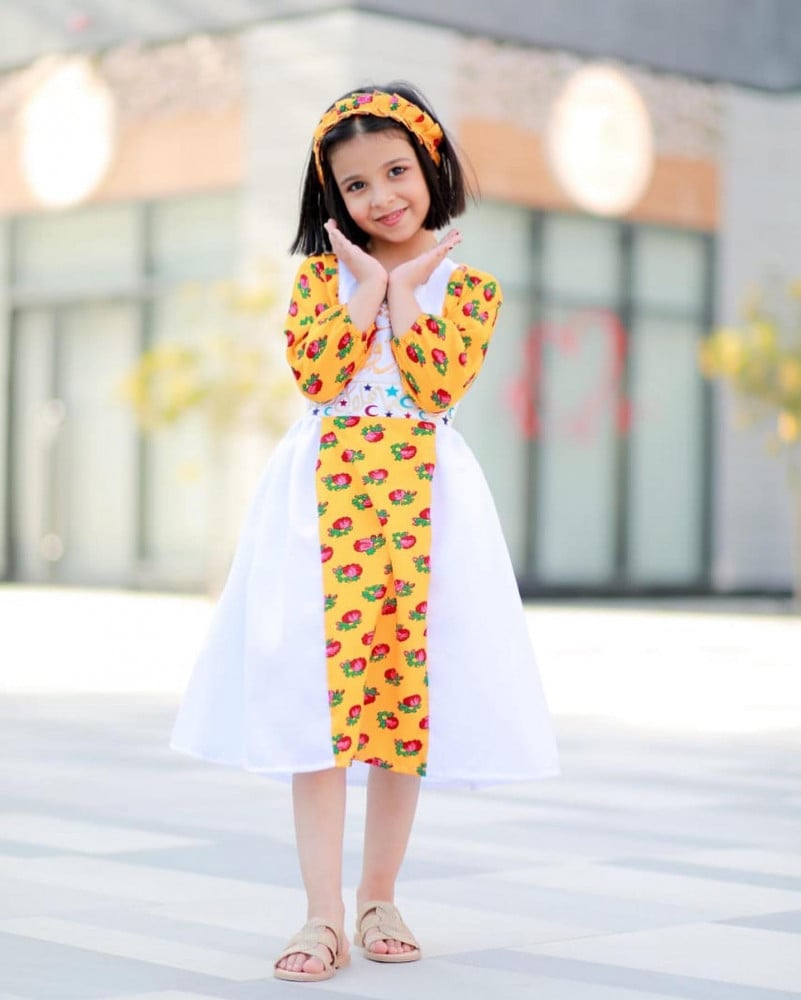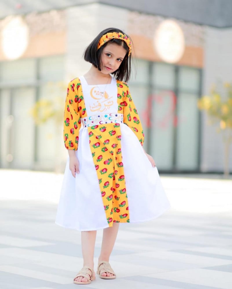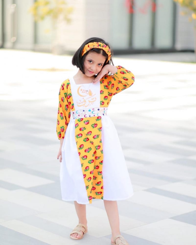 فستان شالكي بناتي بالاسم مع ربطة فساتين وازياء رمضان