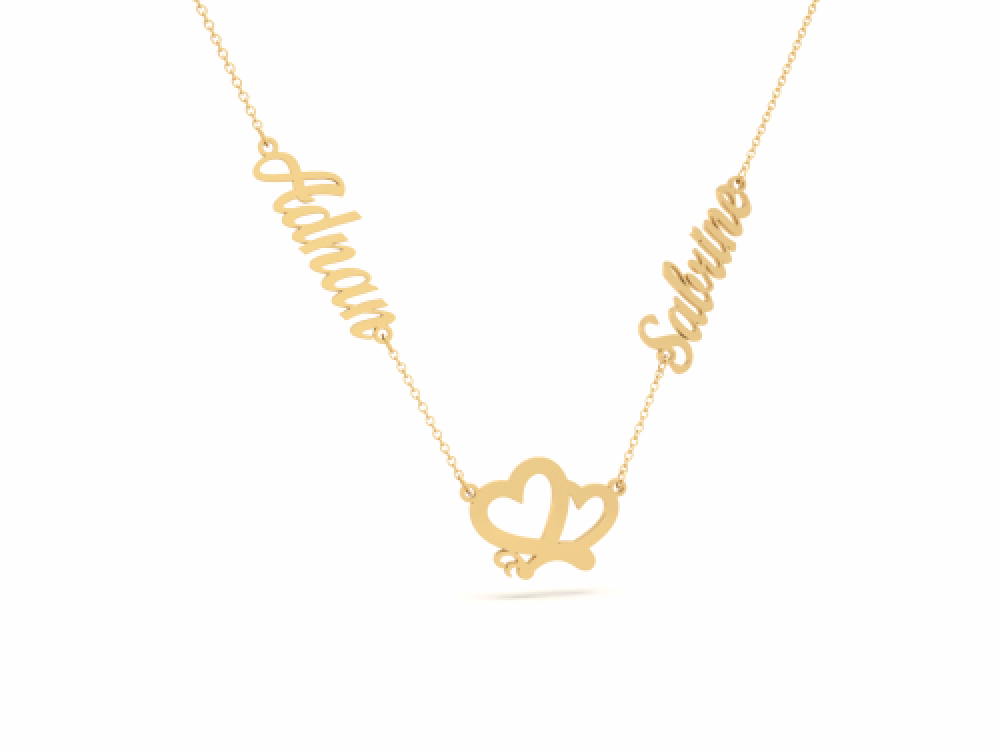 سلسال بتصميم قلبين متداخلين مع الاسمين حسب الطلب