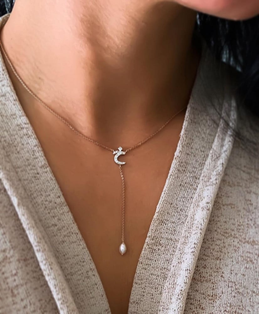 سلسال الحرف المرصع بالزركون مع لؤلؤ بتصميم حسب الطلب