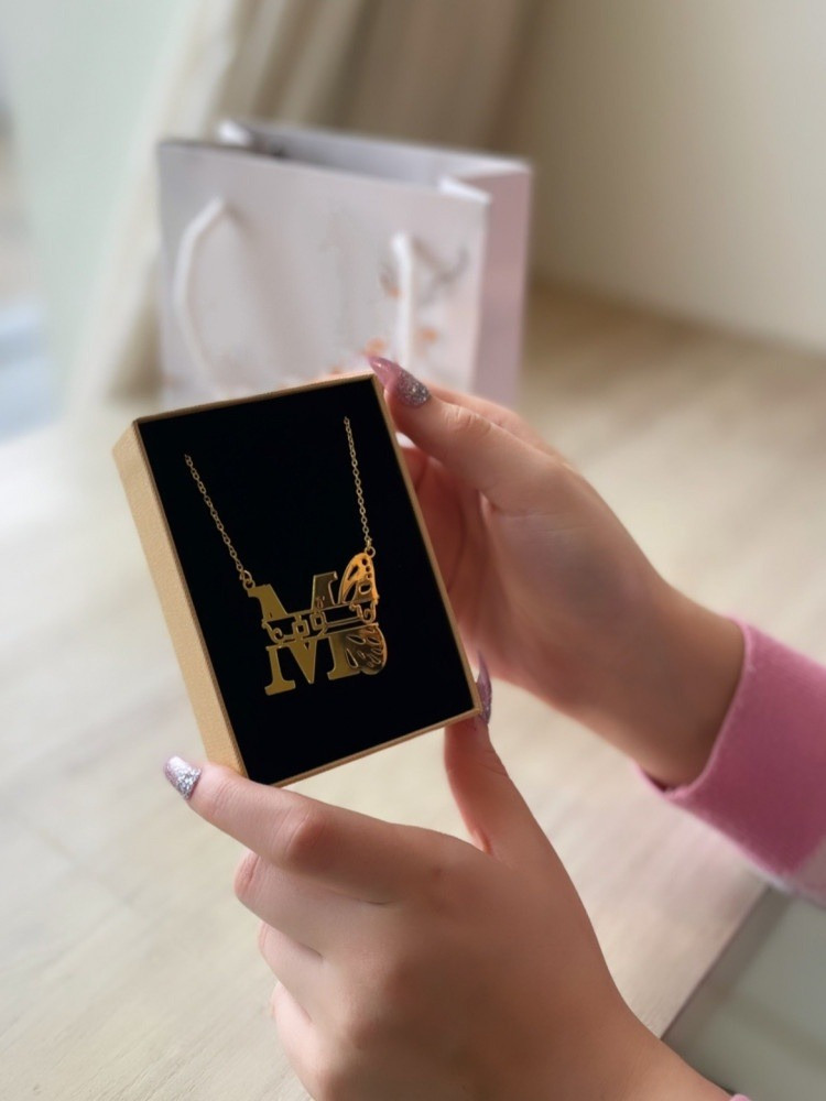 سلاسل اسم وفراشة مع حرف بتصميم متداخل انيق وجذاب التصميم والتصنيع ونحت ليز حسب الطلب