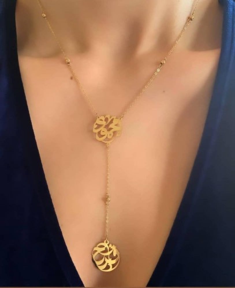 مطلي بالذهب عيار 21 قيراط.يمكنك تخصيص أي اسم أو كلمة (عربي أو إنجليزي).متوفر طلاء ذهبي أو فضي (روديوم).ضمان سنتين على اللون من لافيولا.سمك 0.7 مم.تأتي داخل علبة هدايا بسيطة وكيس عليها شعار لافيولا