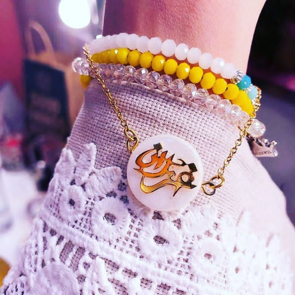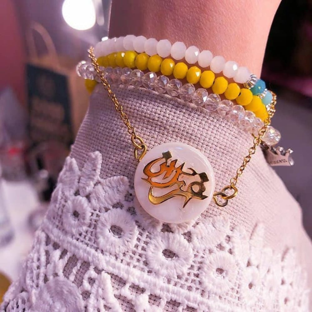 سلسلة بتصميم الاسم مع صدف افريقي ومع حجر كريم حسب الطلب اسم وبرج او حرف وبرج