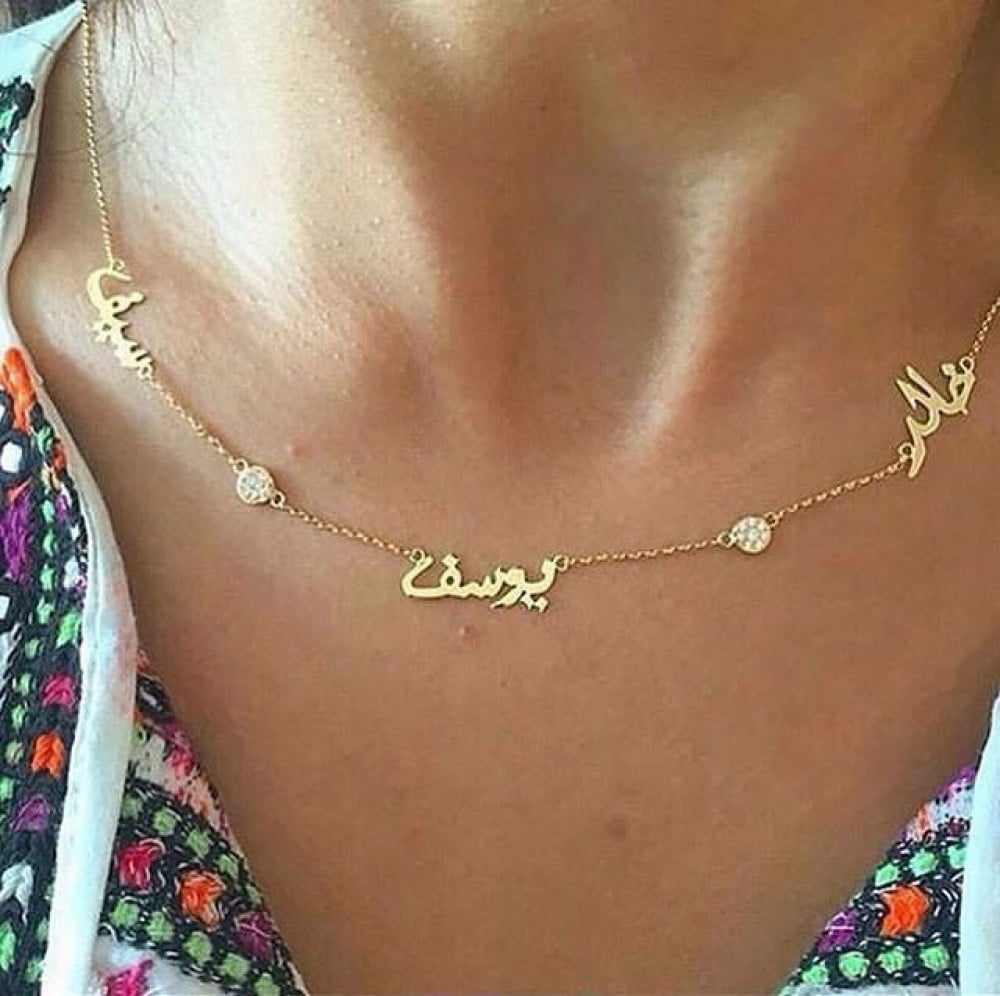 سلسال بتصميم الاسم بلونين مع الزركون حسب الطلب