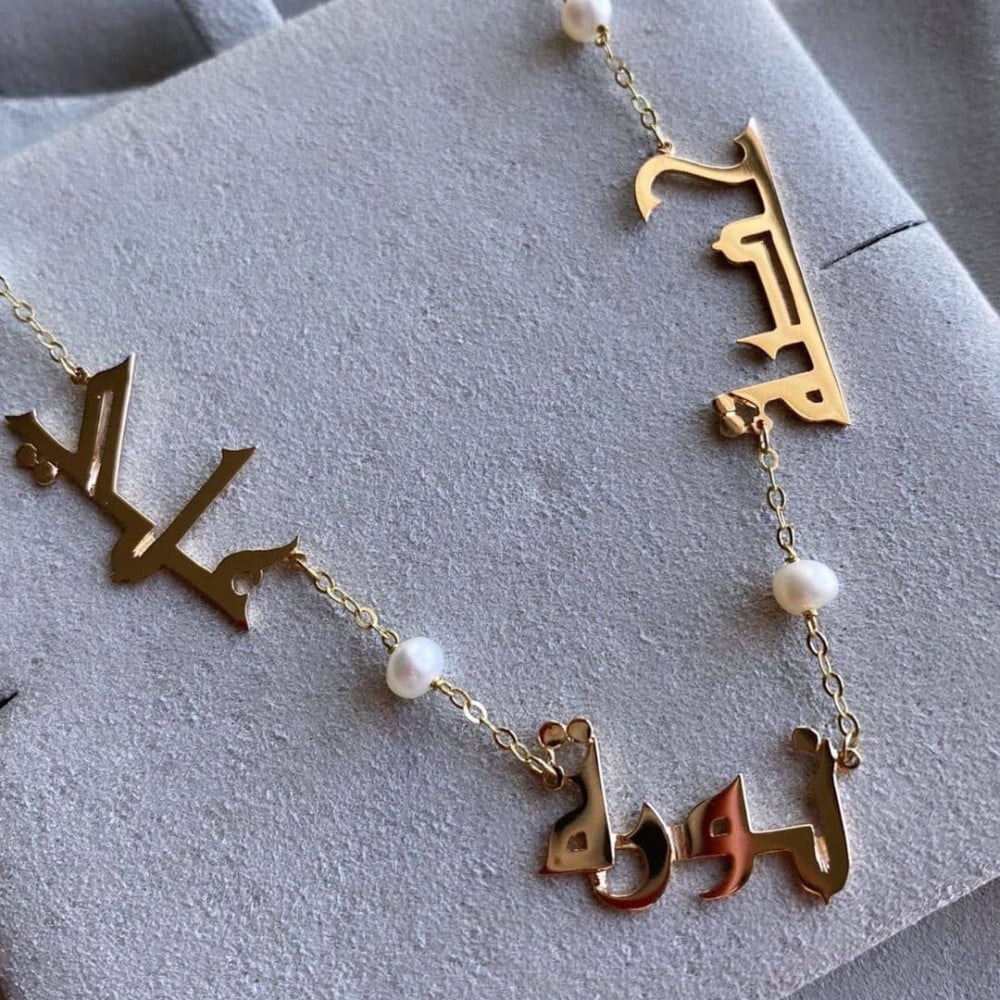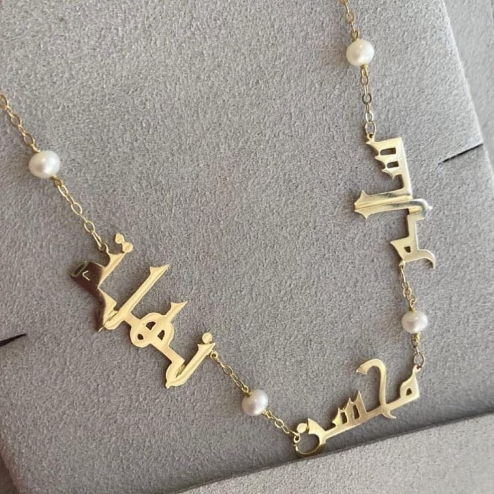سلسال بتصميم الاسم مع شوكر الؤلؤ و الزركون حسب الطلب