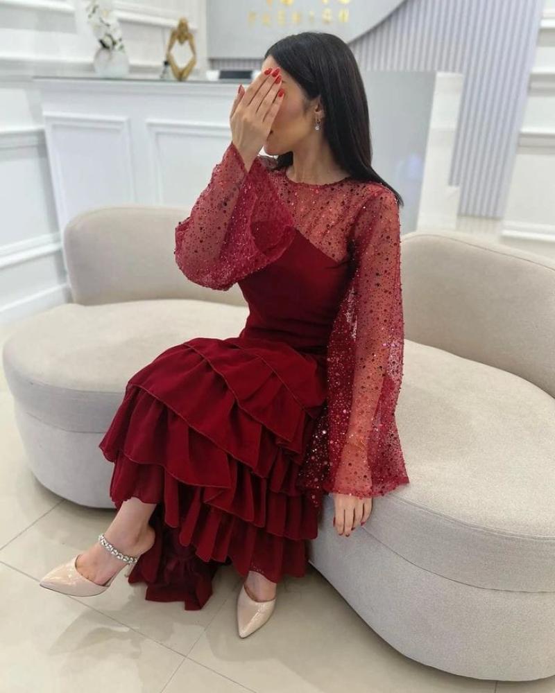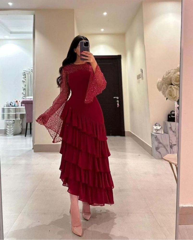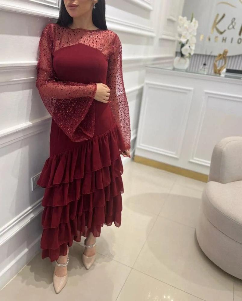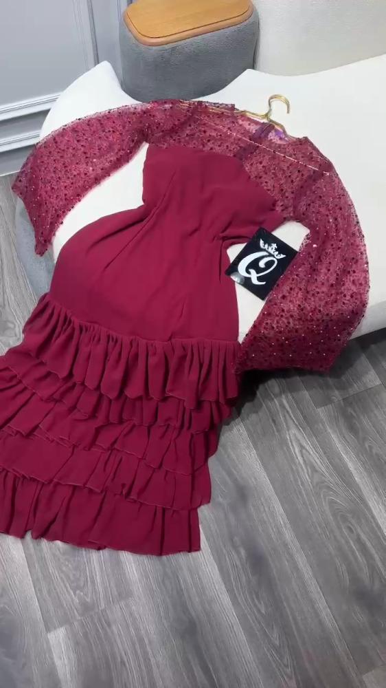 فستان نسائي اكمام سهر قماش جورجيت كردانة