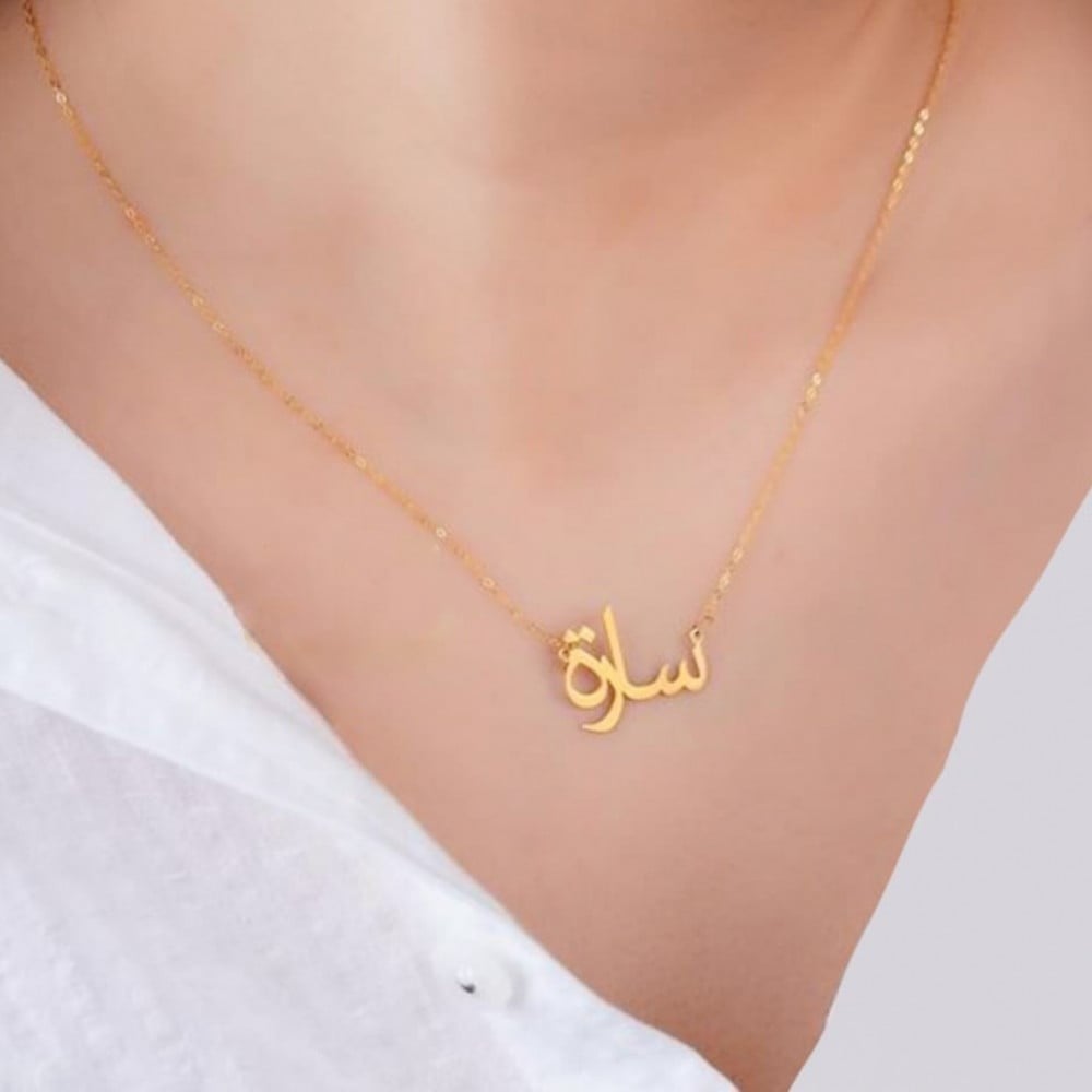 سلسال مميز جدا بتصميم الاسم مع الحرف بالعربي أو الإنكليزيي يمكن حتى طلب اسمين في السلسال واحد مطلي بطلاء ذهب عيار 21 مع ضمان سنتين على اللون بسمك 0.7 مم وطبعا مع علبة مخصصة وكيس