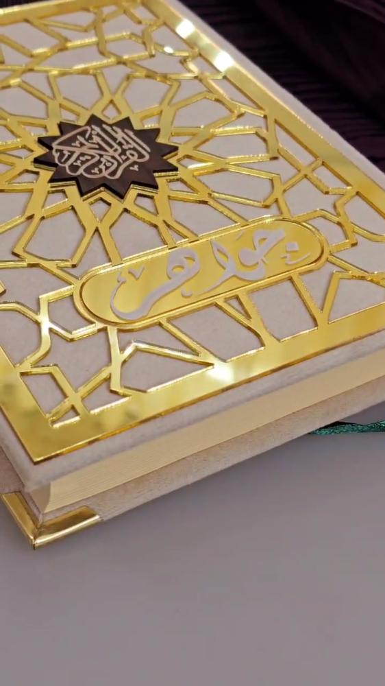 مع مصحف قران كريم تلبيس اكريلك بالاسم حسب الطلب 🖊️