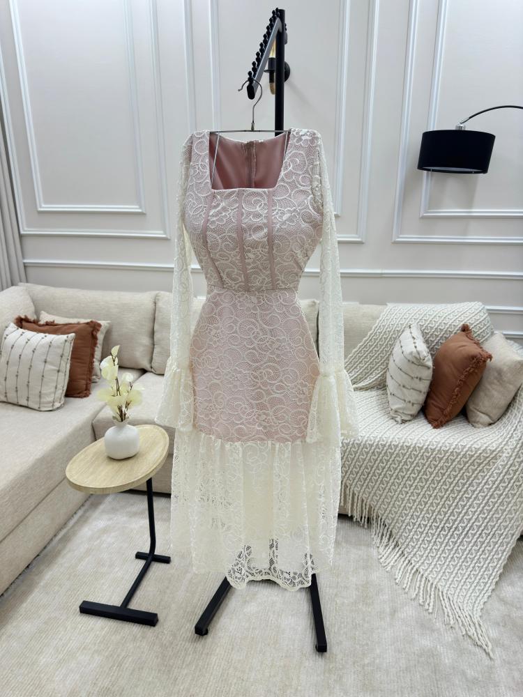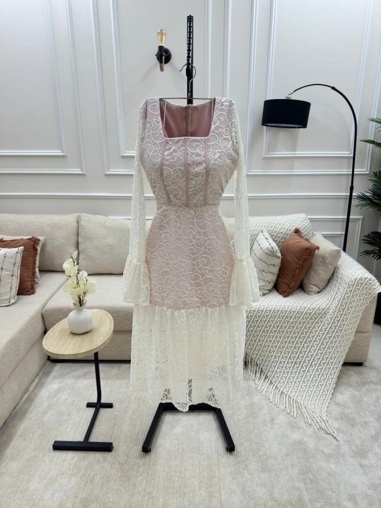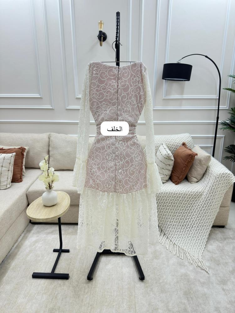 فستان نسائي سهره قماش دانتيل مشجر ناعم مع تفته ستريتش