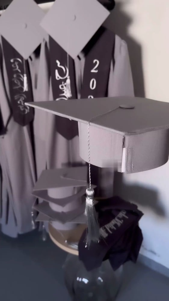 عبايات تخرج 2024 تفصيل العباية و تطريز الوشاح والقبعة حسب الطلب