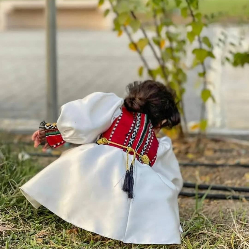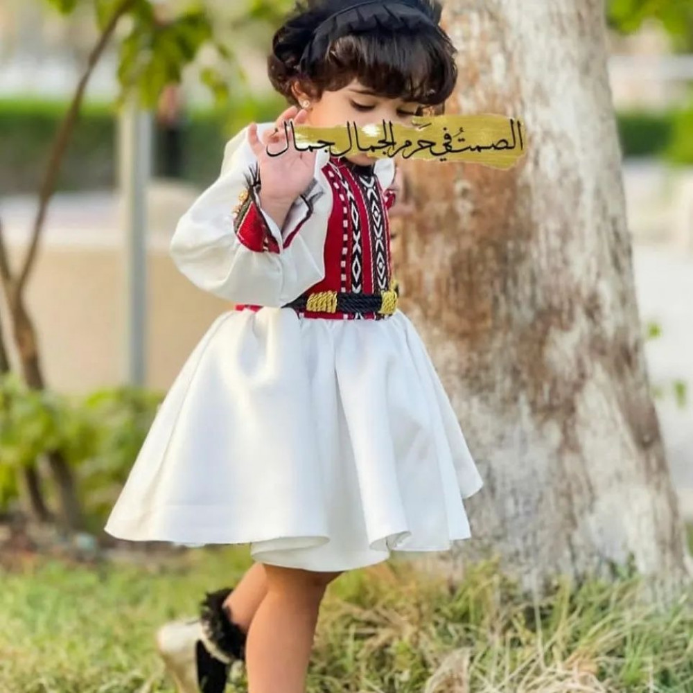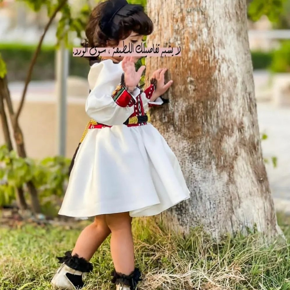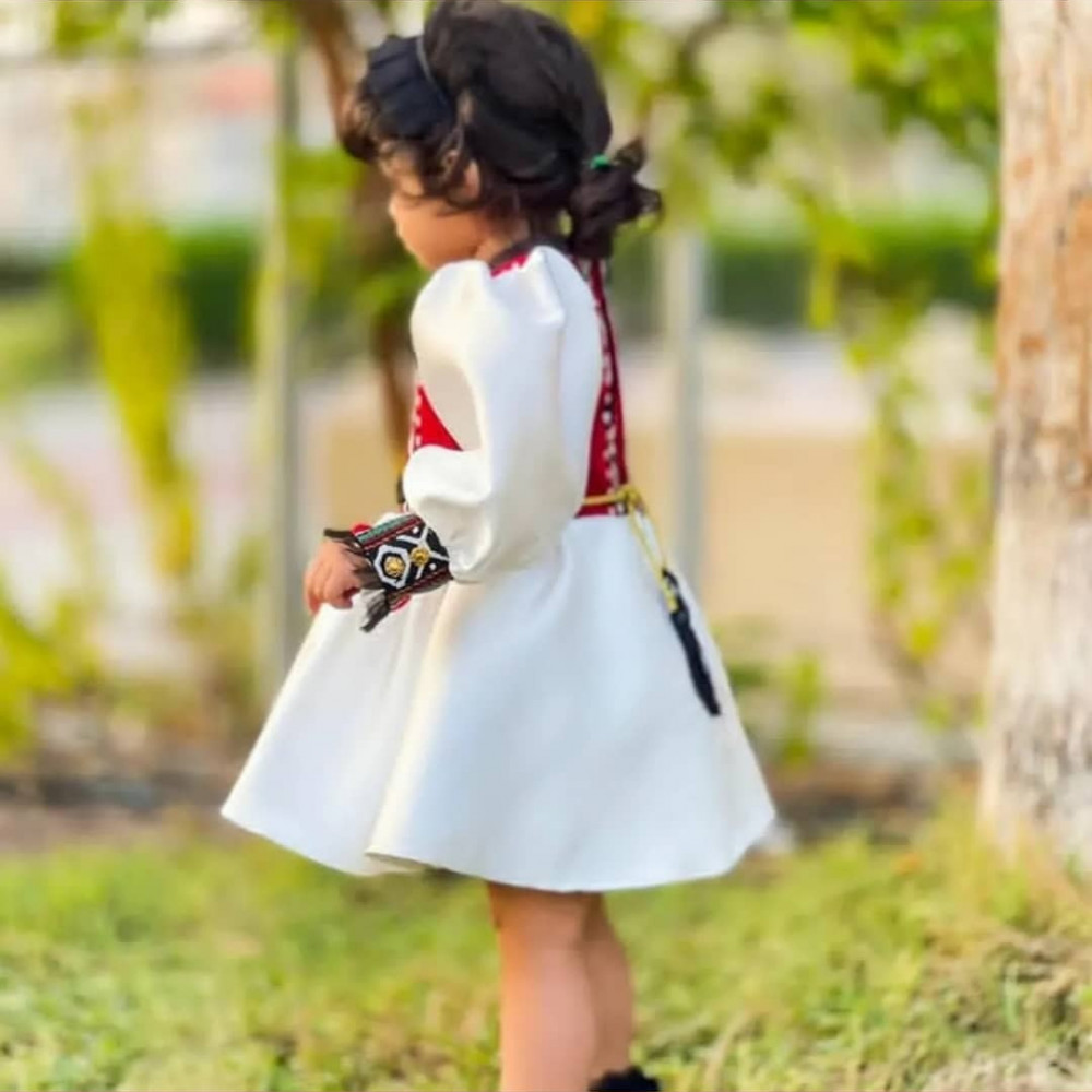 فستان وطني بناتي ليوم التاسيس الوطني قماش كريب مع سدو