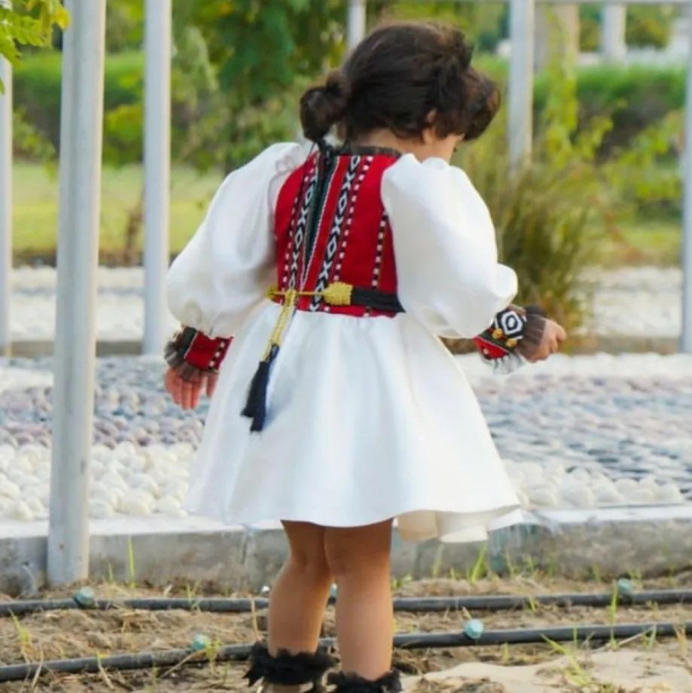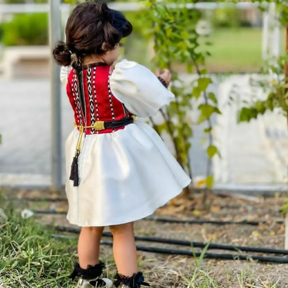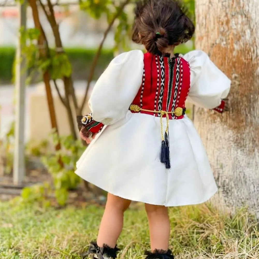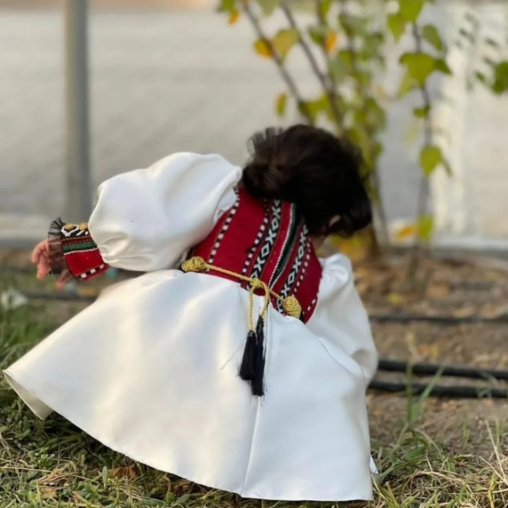 فستان وطني بناتي ليوم التاسيس الوطني قماش كريب مع سدو