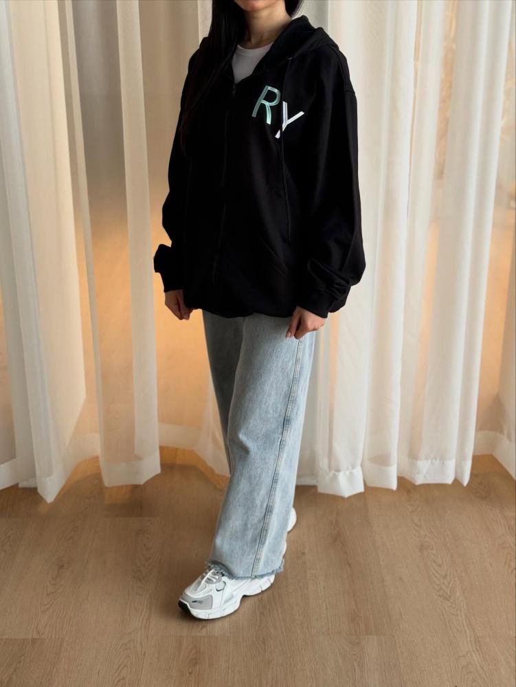 🔹ياقة هودي واكمام طويلة منفوخة .