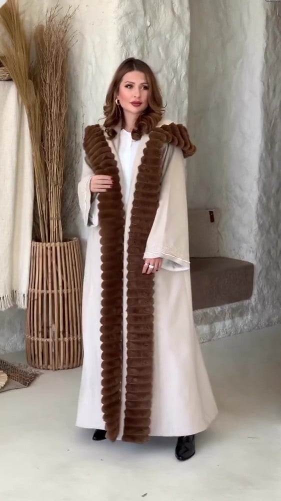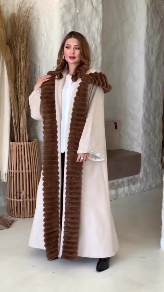فروات نسائية انيقة فرو شتوي نسائي شموة مع جوخ فاخر مع فرو طبيعي بصناعة وطنية يدوية بانامل سعودية جودة عالية