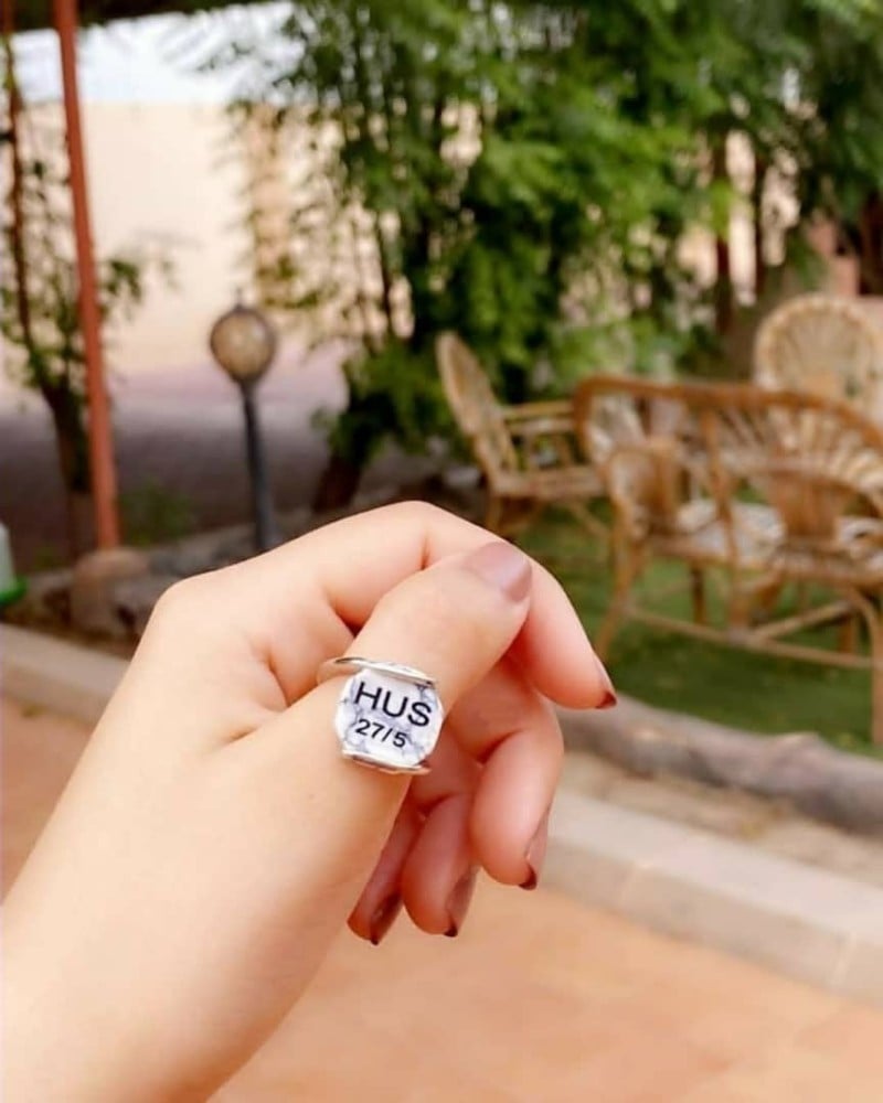 خواتم نسائي فضة إيطالي خالص عيار 925 مع نحت الاسم ة مع حجر الاونكس او حجر كريم او مع عقيق