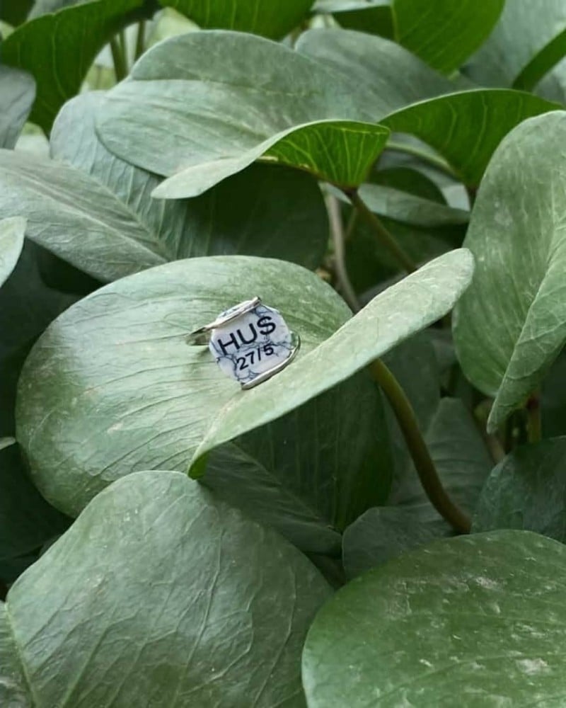 خاتم نسائي فضة خالص عيار 925 سداسي مع حجر الماربل الابيض