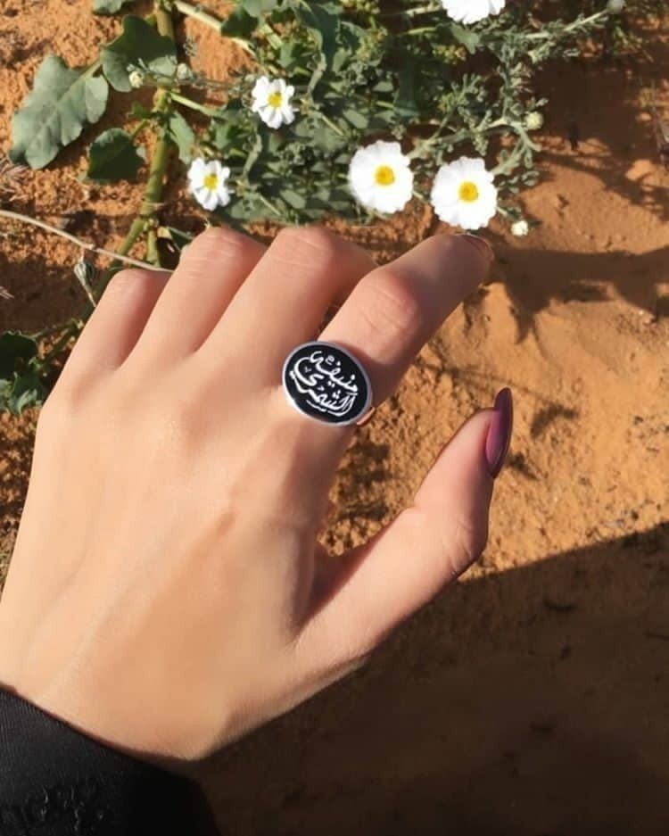 خواتم فضة نسائية إيطالي خالص عيار 925 مع نحت الاسم والسيفين ونخلة او سادة مع حجر الاونكس الكريم او مع عقيق