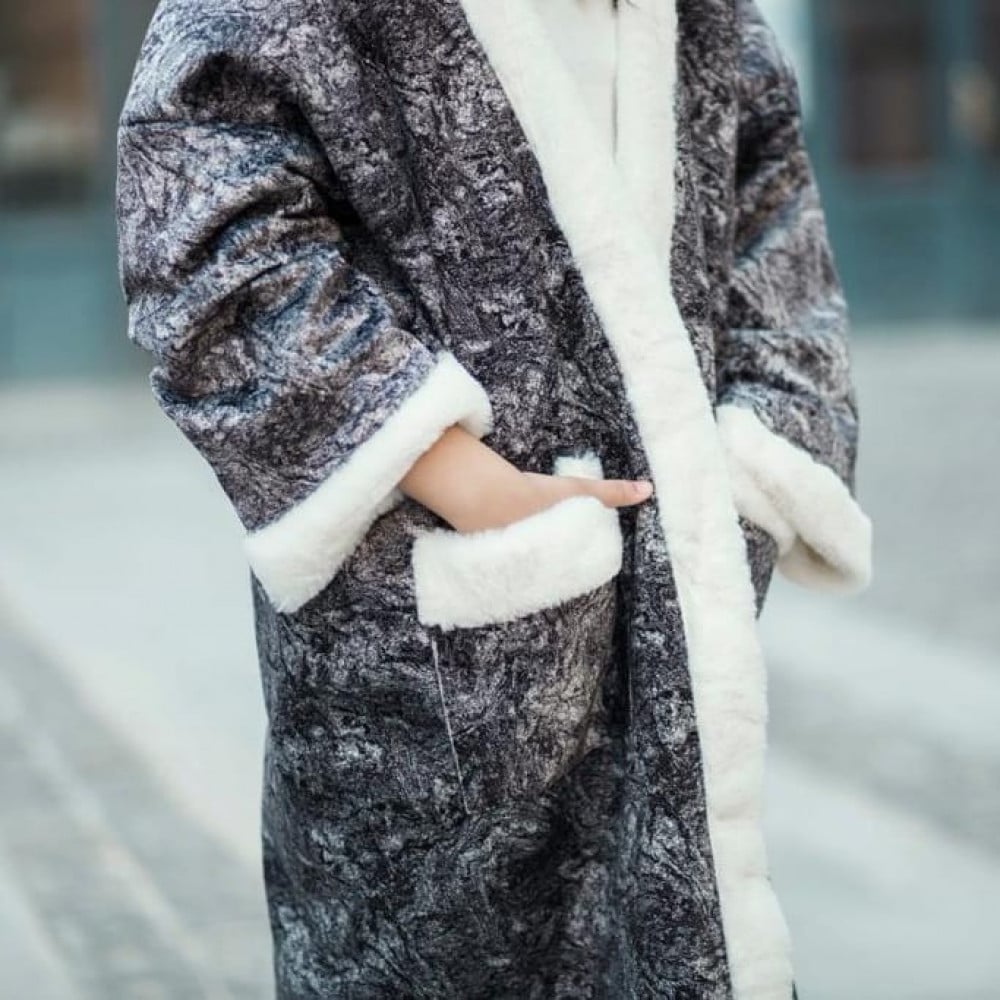 فروه دبل فيس مع شال سكري غامق وكحلي جوخ