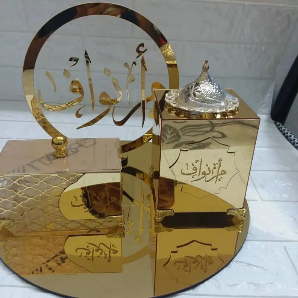 مبخرة وصينية واستاند وحامل مبخرة اكريلك بالاسم حسب الطلب