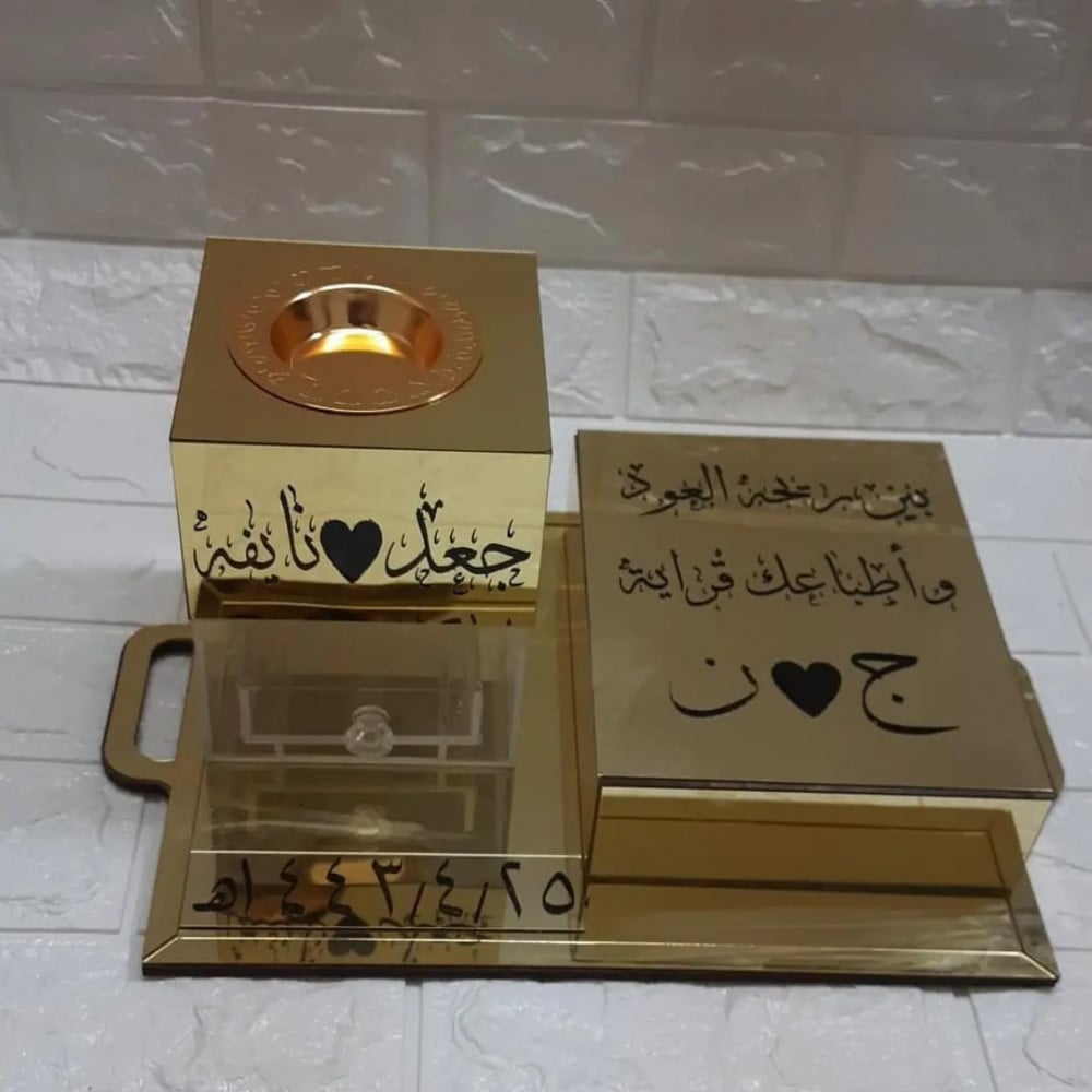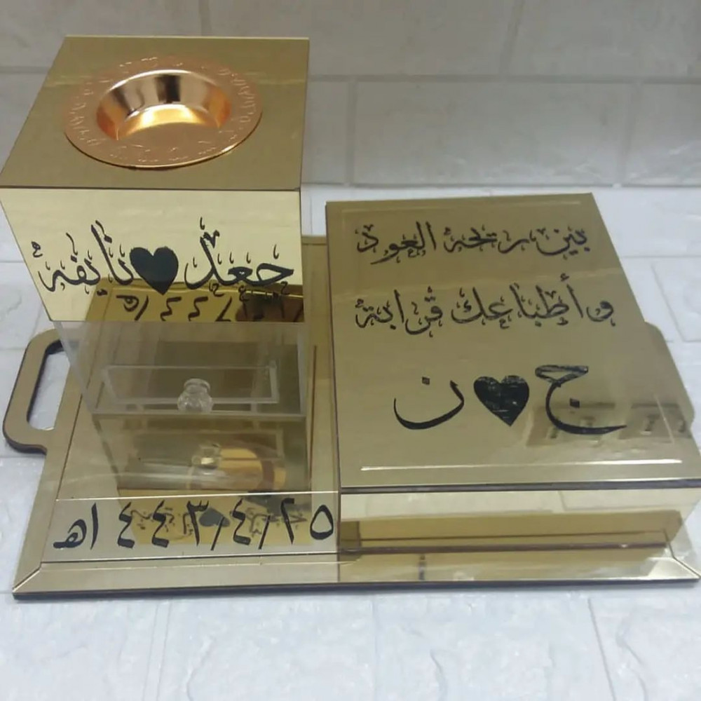 مبخرة وصينية اكريلك بالاسم حسب الطلب