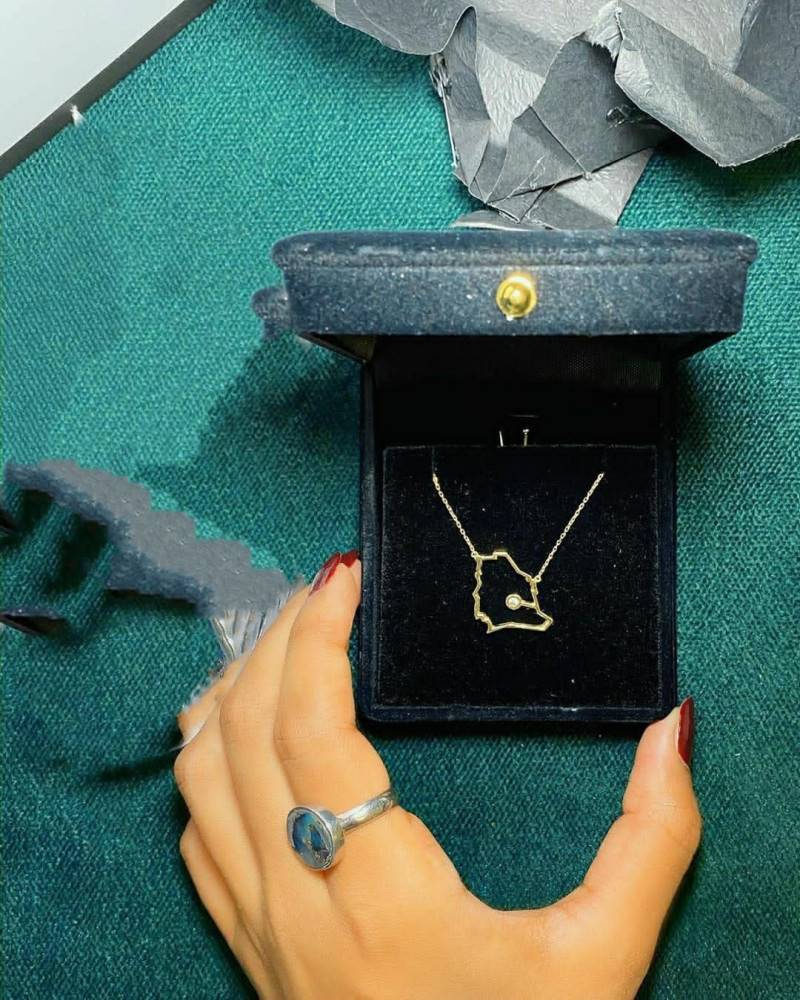 سلسال الخريطة الوطنية مع تلوين المينا فضة خالص مع حجر كريم