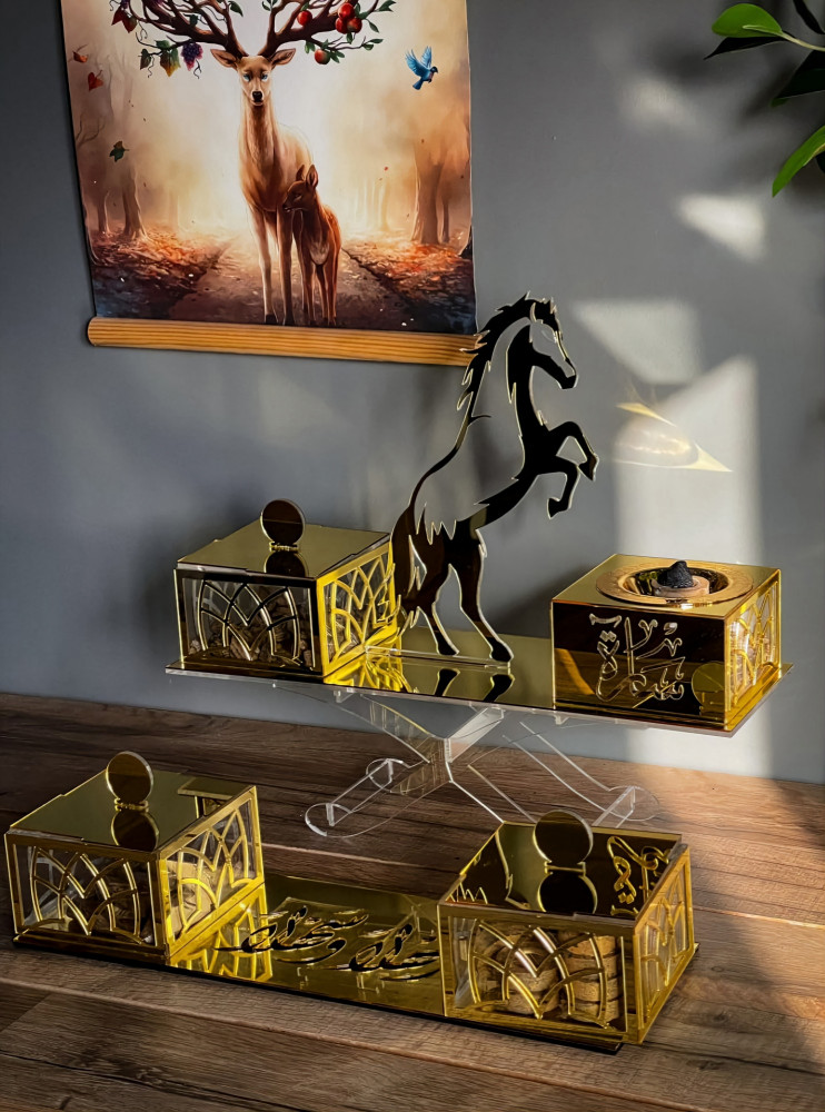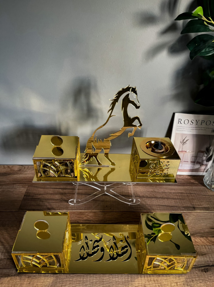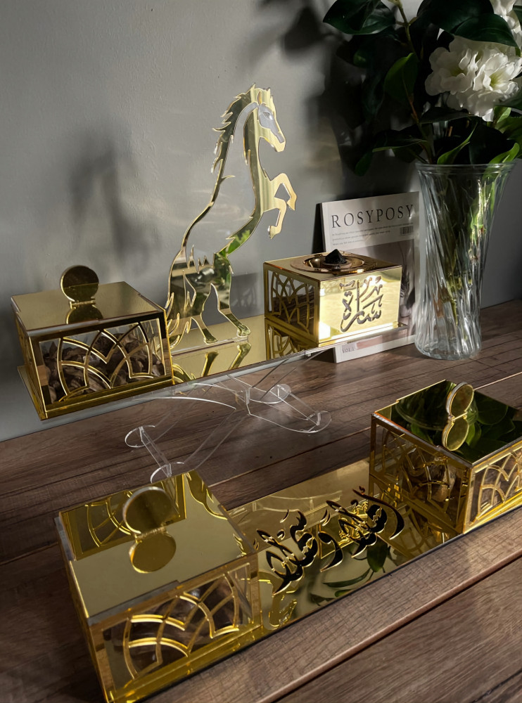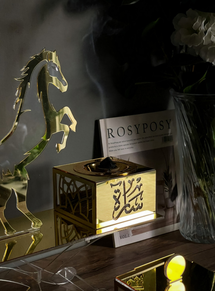 لم نكتفي فقط بالبخور و مستلزماته أضفنا مع هذا العرض الفاخر مبخرة مستوحاه من المرايا باللون الذهبي الفاخر تحمل اسمك او اسم من تحب.