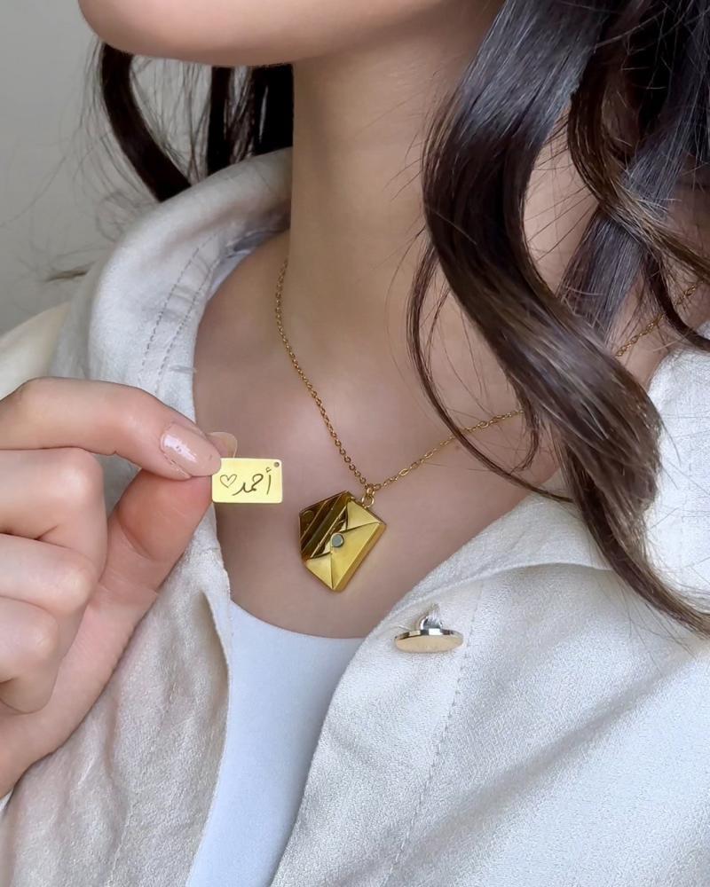 مطلي بالذهب عيار 21 قيراط.يمكنك تخصيص أي اسم أو كلمة (عربي أو إنجليزي).متوفر ذهبي أو فضي.