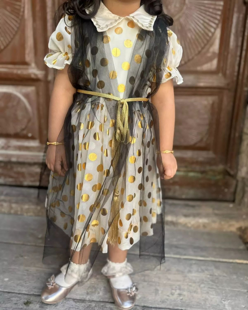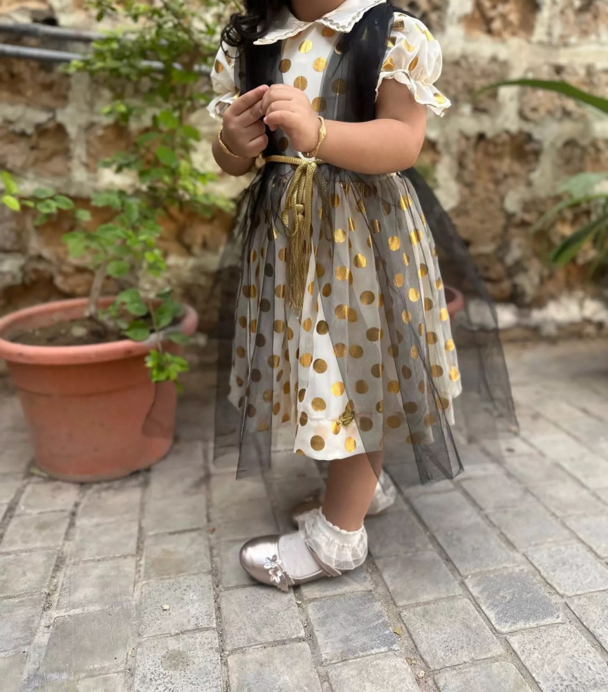 فستان وطني بناتي ليوم التاسيس الوطني قماش كريب مع سدو