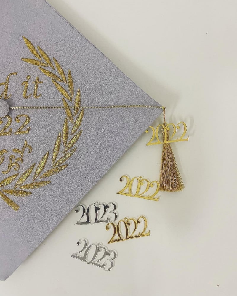 قبعه تخرج تطريز بالاسم والعبارة وسنة التخرج وشعار الدفعة