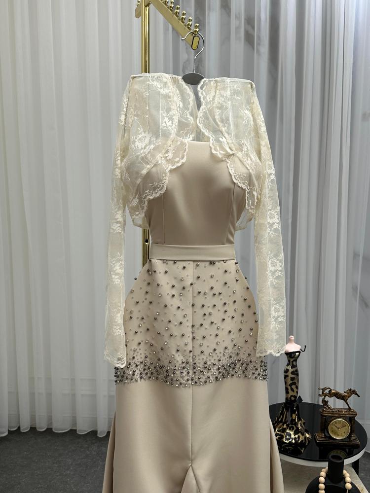 فساتين نسائي صيفي سهرة قماش باربي مع دانتيل