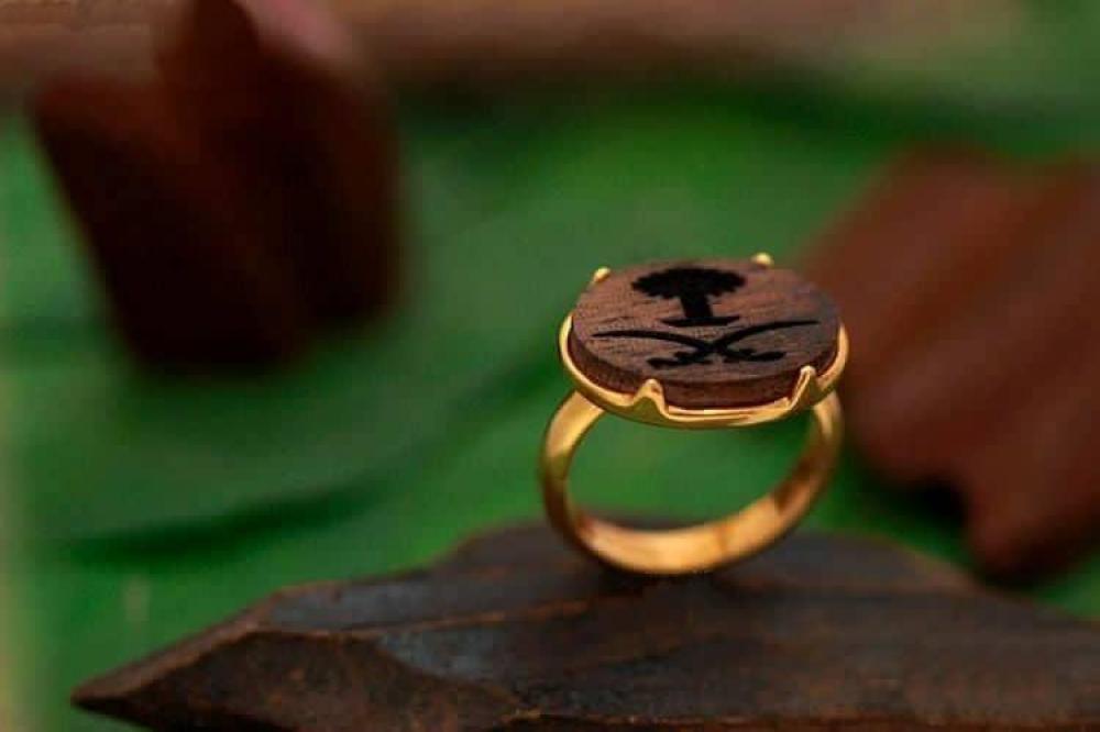 خواتم كولكشن وطني خواتم فضة خالص مع كسرة العودة الطبيعية الفواحة مع السيفين ونخلة