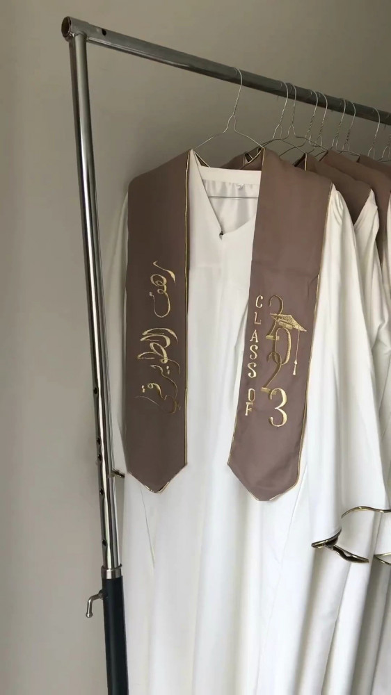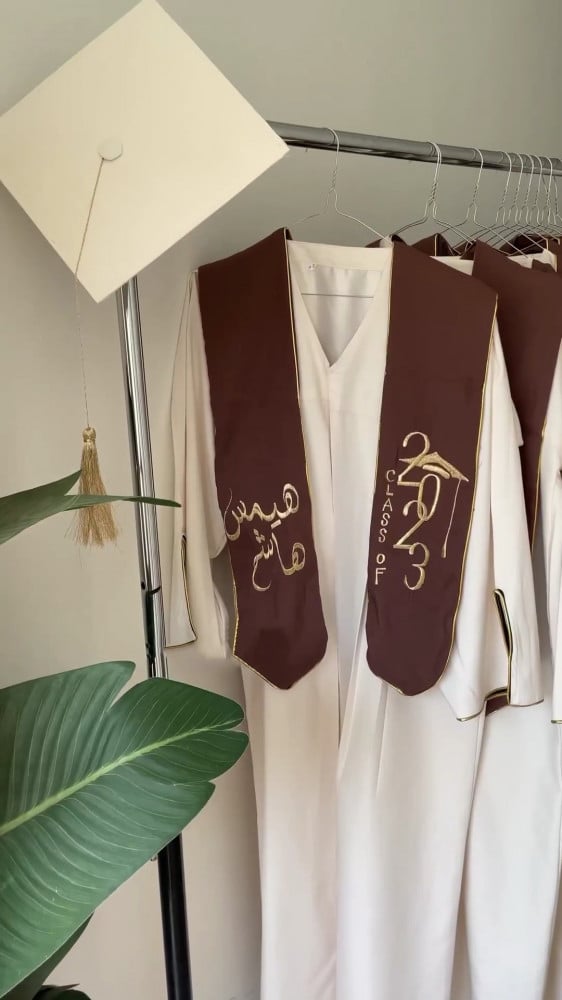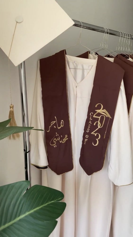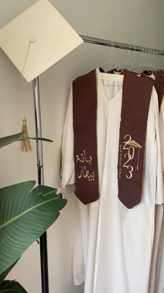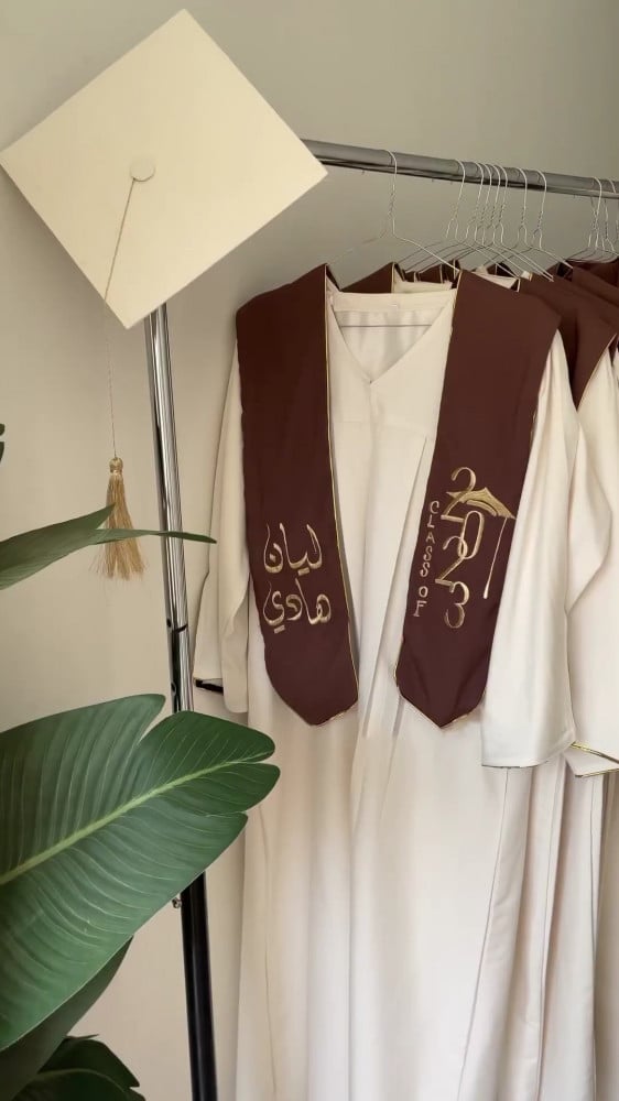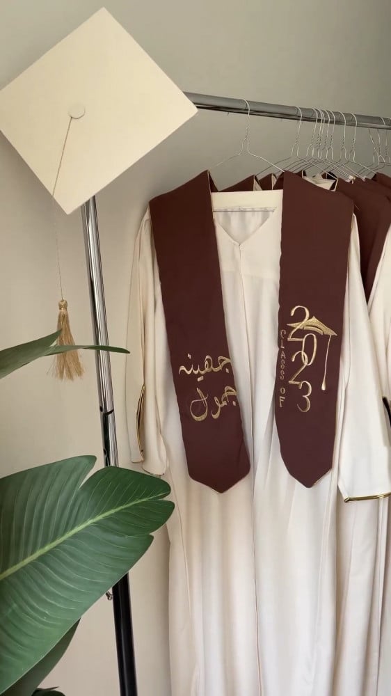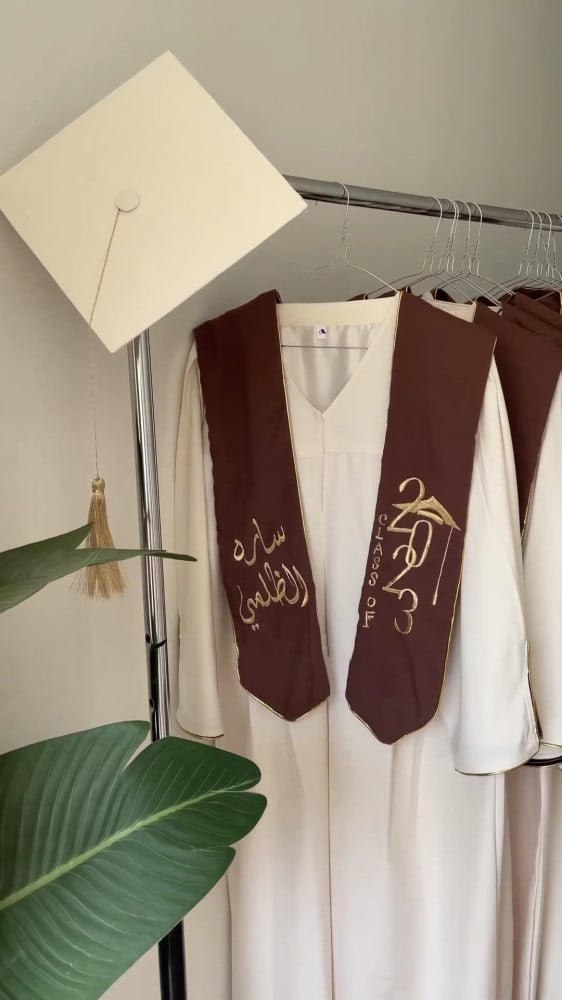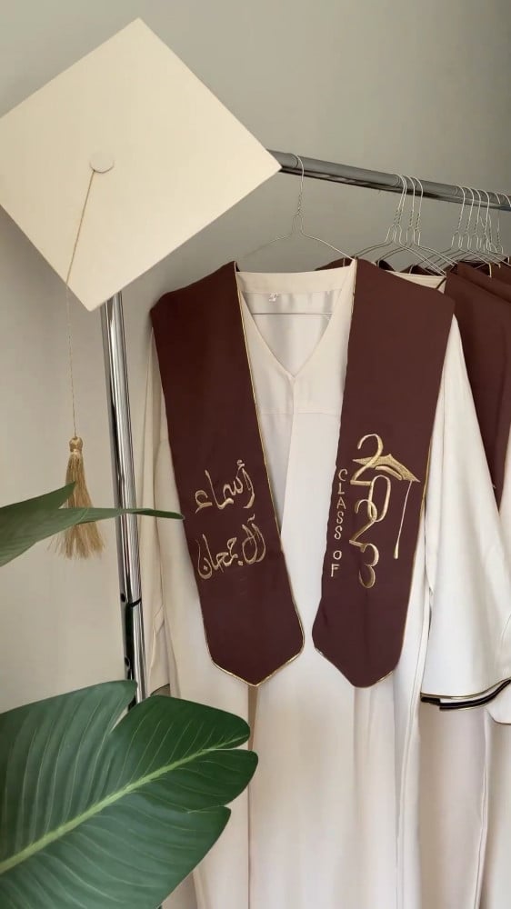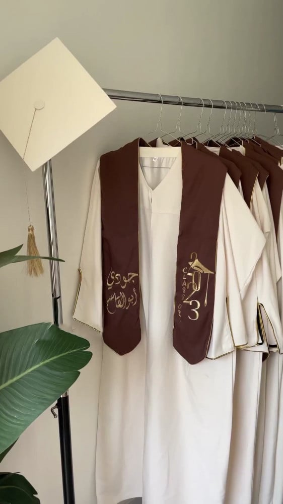 عبايات تخرج 2023 تفصيل العباية و تطريز الوشاح والقبعة حسب الطلب