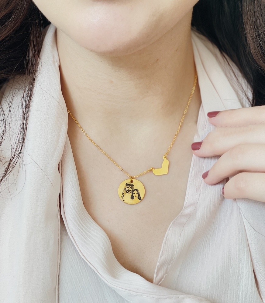 سلسال مميز جدا بتصميم الاسم مع الحرف بالعربي أو الإنكليزيي يمكن حتى طلب اسمين في السلسال واحد مطلي بطلاء ذهب عيار 21 مع ضمان سنتين على اللون بسمك 0.7 مم وطبعا مع علبة مخصصة وكيس