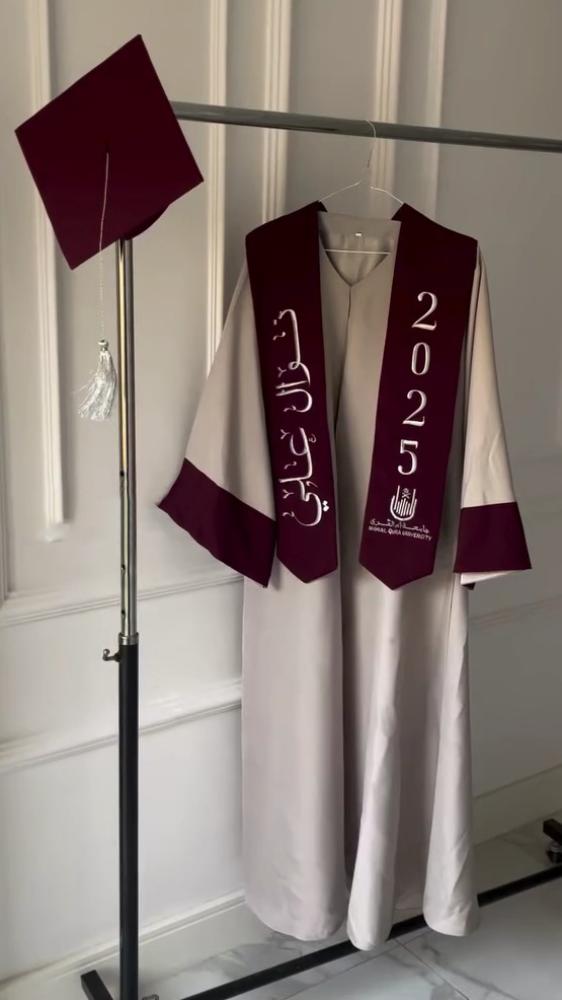 عبايات تخرج جامعة ام القرى 2025 بالاسم والعبارة وسنة التخرج وشعار الدفعة