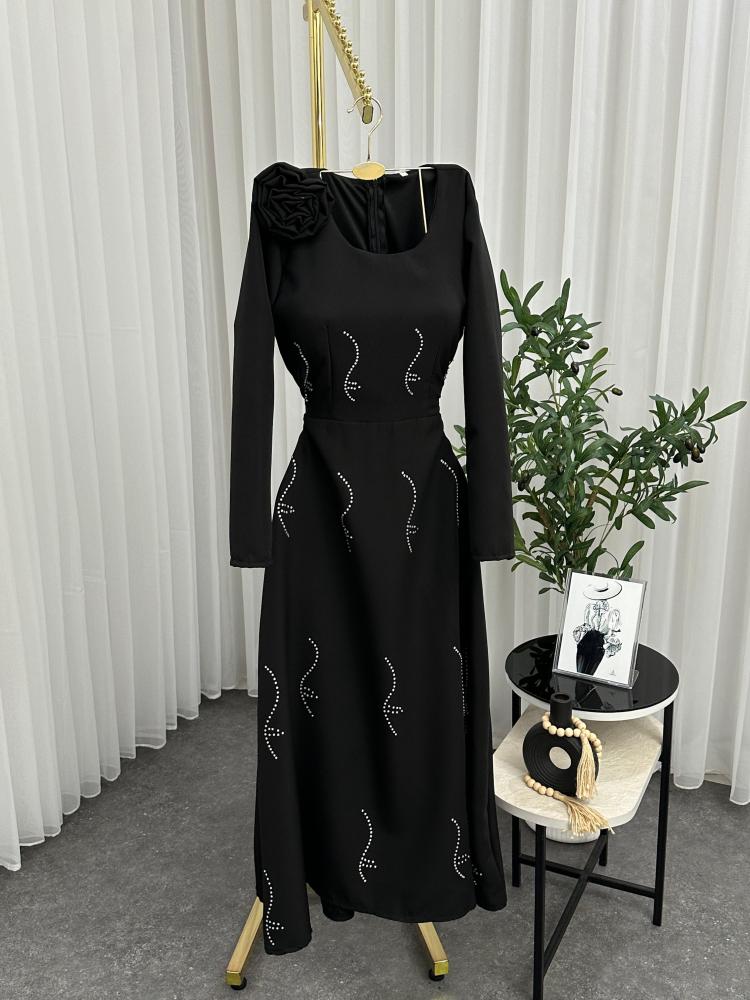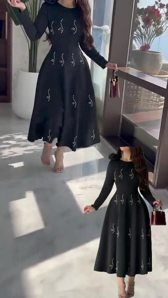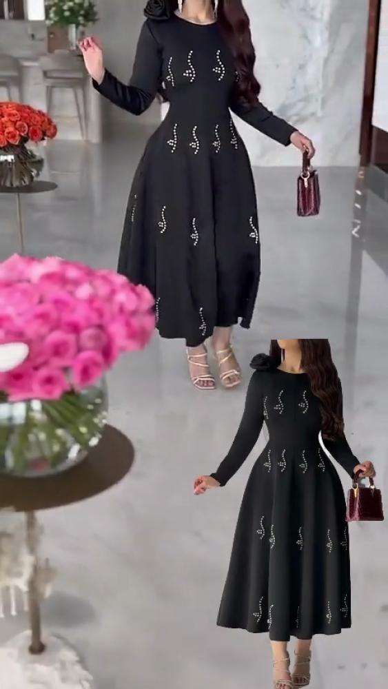 فساتين العيد نسائي قماش كريب استرتش مع فصوص