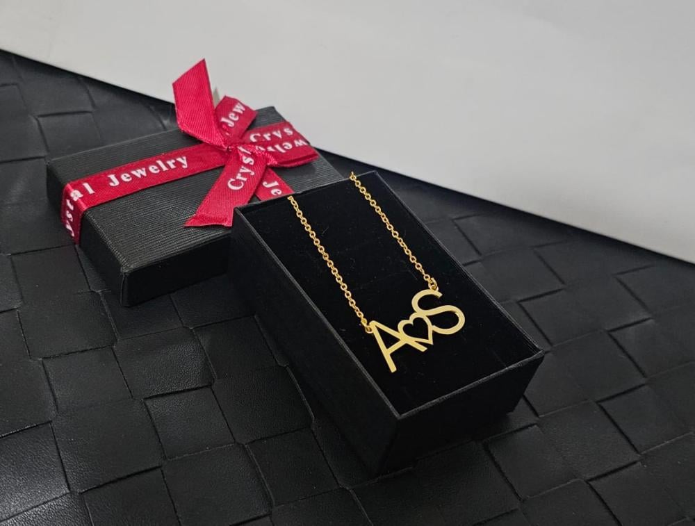 سلسلة بتصميم الاسم مع صدف افريقي ومع حجر كريم حسب الطلب اسم وبرج او حرف وبرج