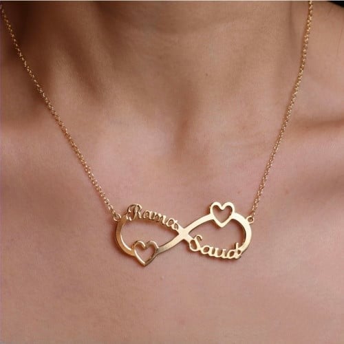 سلسال انفنتي باسمين مع قلبين حسب الطلب