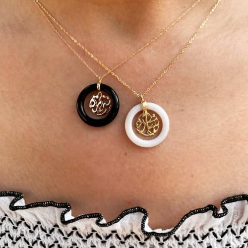 سلسال فضة مع حجر الاونكس مع نحت الاسم