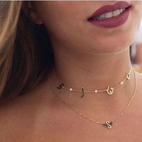سلسال بتصميم الاسم مع شوكر اللؤلؤ