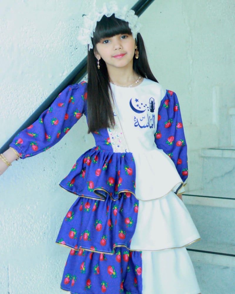 فستان شالكي بناتي بالاسم مع ربطة فساتين وازياء رمضان
