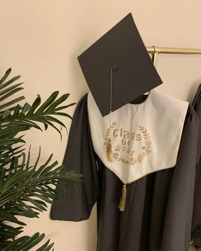 عباية تخرج رجالي قماش كريب بالاسم والعبارة وسنة التخرج وشعار الدفعة