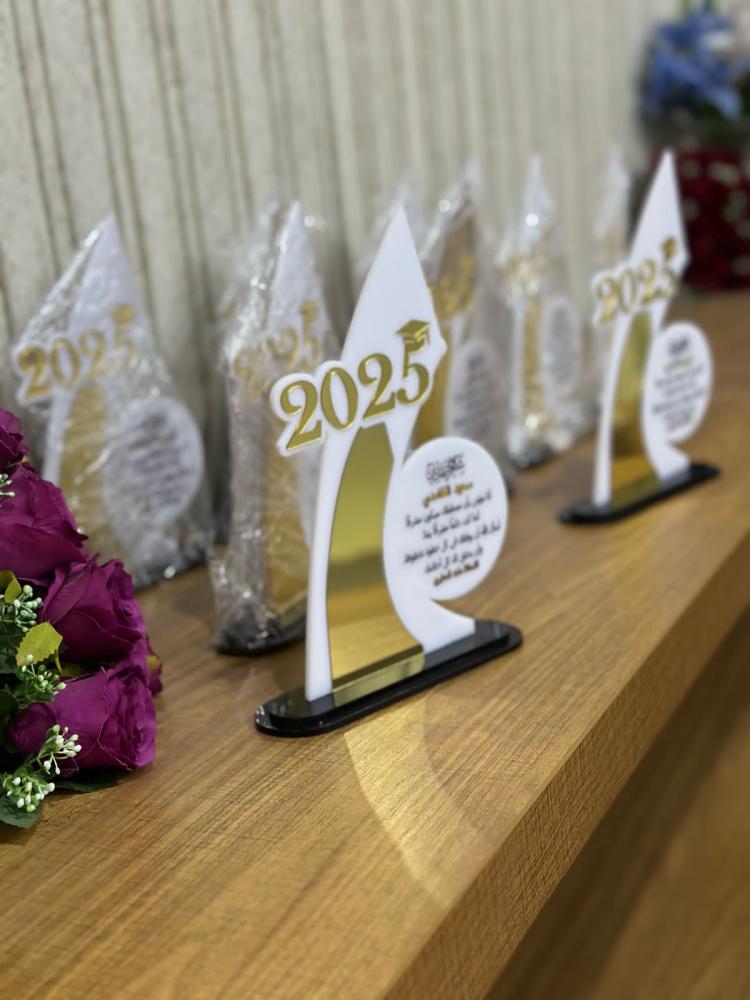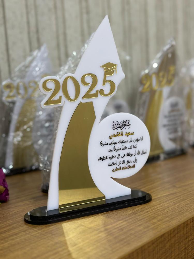 تصميم جديد وانيق للوحة بتصميم تخرج من الاكريلك وورق الفينيل الالماني المطبوع من الامام + ستاند من الاكريلك الشفاف بتصميم كلاسيكي ✨