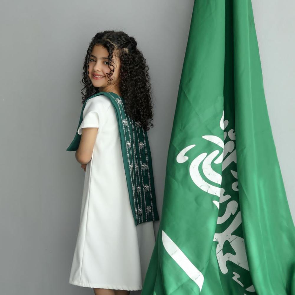 فستان وطني بناتي لليوم الوطني قماش كريب مع سدو
