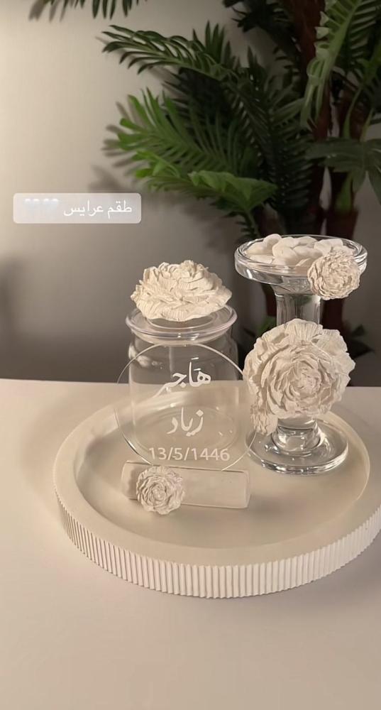 طقم عرايس مكون من مبخره بتصميم عصري مختلف وأنيق علبة عود و شيال و استاند بالاسم
