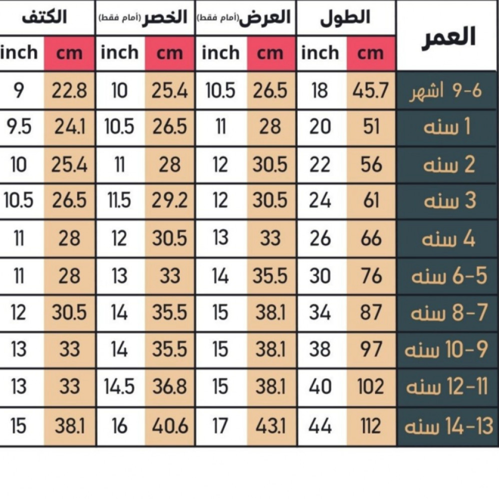 متوفر مقاسات حسب العمر