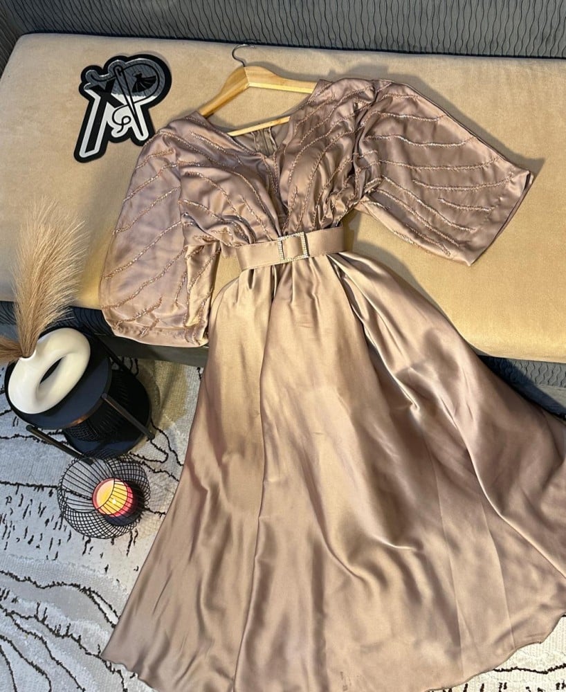 فستان سهرة من قماش التفته الحرير بالألوان مميزة ومذهل يتميز بتصميم رائع