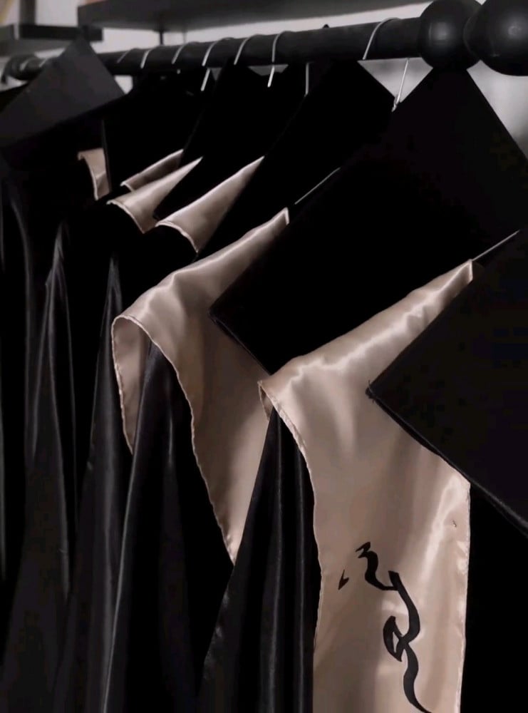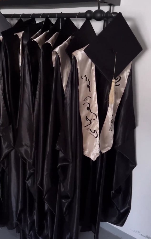 عباية تخرج حرير موديل بشت بالاسم تفصيل حسب الطلب عبايات تخرج 2023