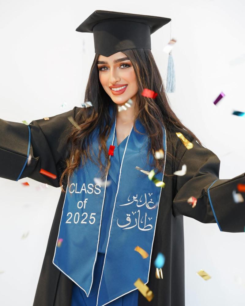 عبايه تخرج 2025 بالاسم والعبارة وسنة التخرج وشعار الدفعة