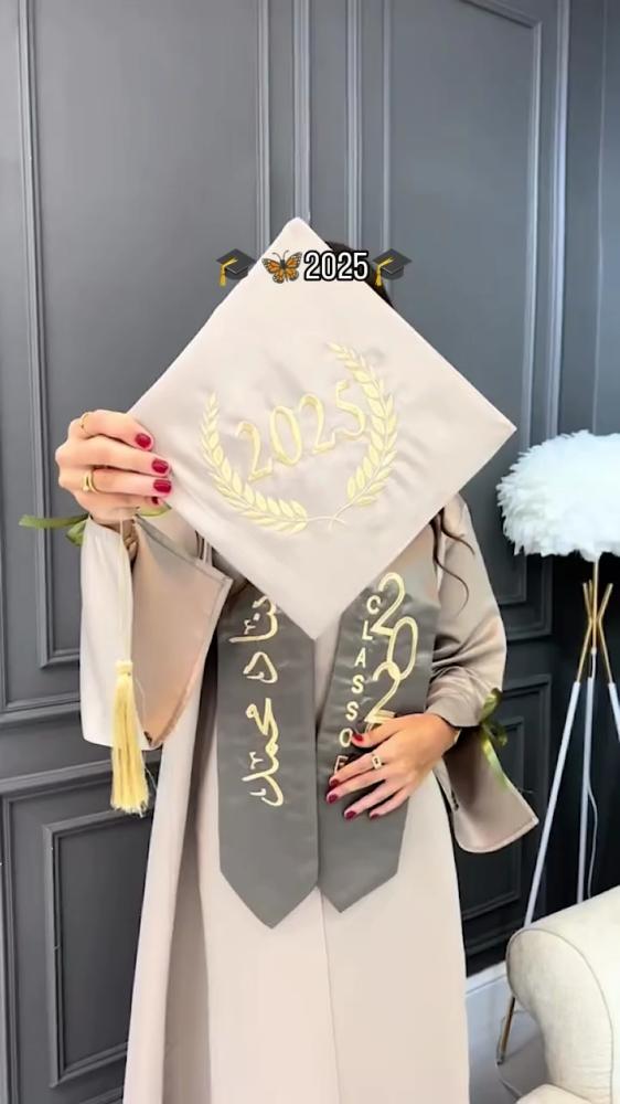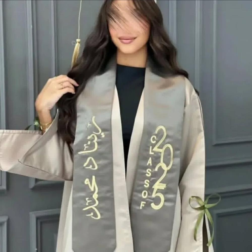 عبايه تخرج 2025 بالاسم والعبارة وسنة التخرج وشعار الدفعة