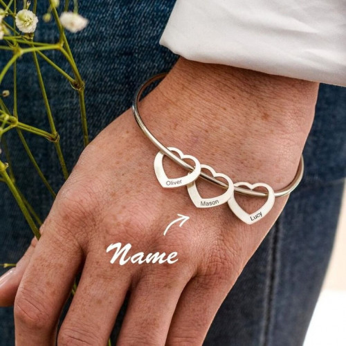 اسوارة بتصميم ثلاصة قلوب و ثلاثة اسماء بتصميم حسب الطلب
